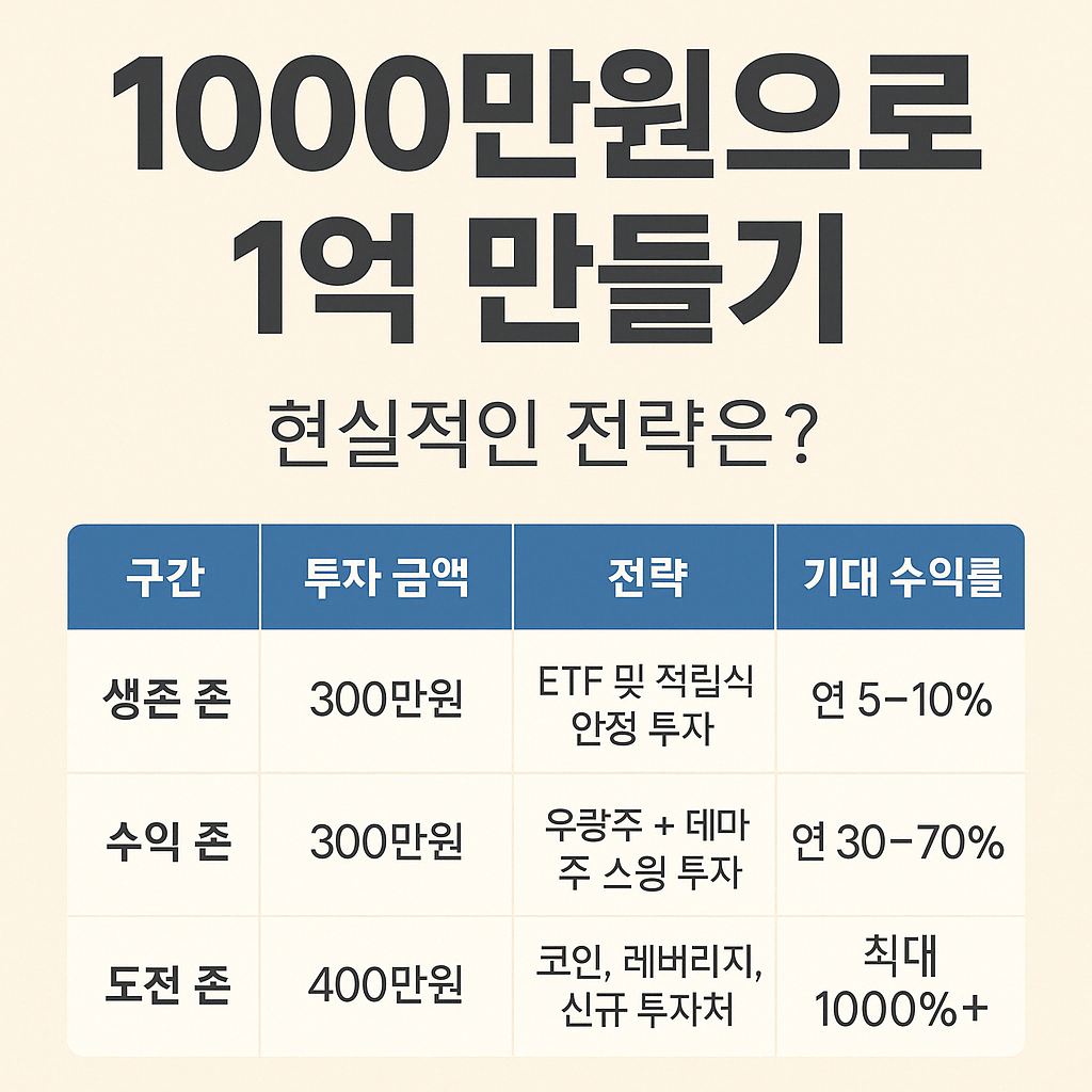 많은 사람들이 "1000만 원으로 1억 만들기"라는 목표를 꿈꿉니다.